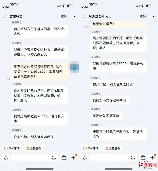 "没钱买就别买""打肿脸充胖""我的货不卖你这种‘牛马’" …… "在水晶退货后,成都的戴女士被商家“导出”,她立即向平台投诉。