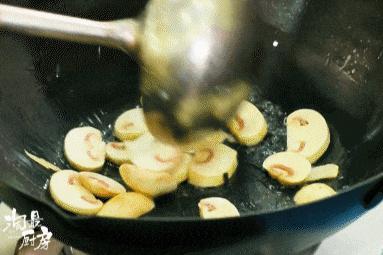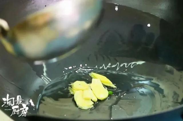 ❶ 锅里倒 2 调汤(30ml)食用油,放入食用油 4 片姜片和 10 蒜头炒香。