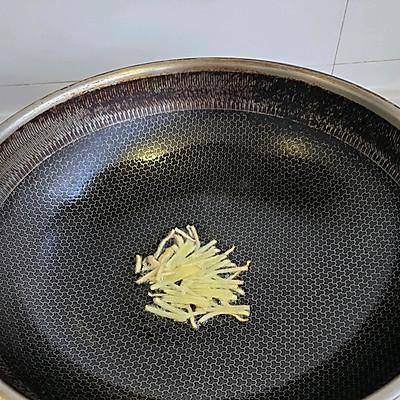 5、开火 热锅温油 加入牛油果油 姜丝爆锅搅拌均匀…保持中小火…