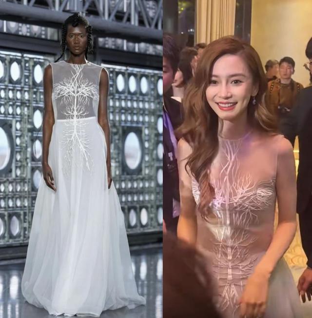 据报道,杨颖这次是某某高定的。 2025 春夏新款是世界上第一款,足以说明她还是可以获得相当好的时尚资源的。杨颖的穿着效果和模特有两种完全不同的风格,但观感并不比模特差。