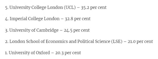 根据上述数据,英国顶尖大学的数据显示所有平均工资均达到应届毕业生工作签证标准。 27090 元。但是令人惊讶的是,榜主居然是 LSE,是 QS 全球排名居 50 位 LSE,剑桥大学和牛津大学是世界顶尖大学之一,各自排名第三和第四。