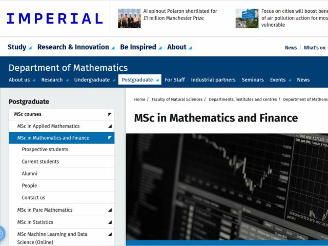 本年度项目归因于本年度项目。 Imperial 的数学系(QS 世界大学学科排名英国第一。 3,世界第 课程包括数学基础、金融原理、工具、实施和数据分析。