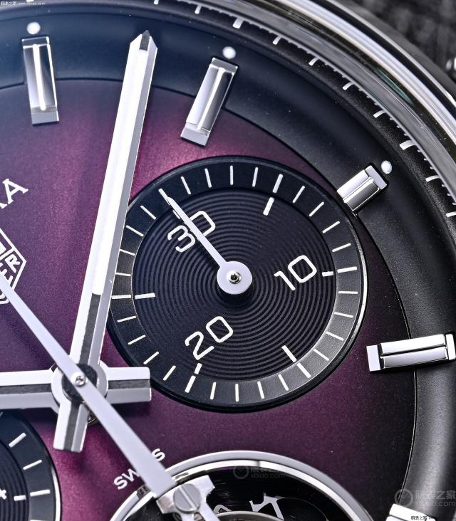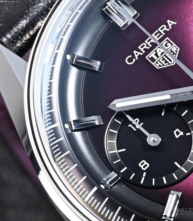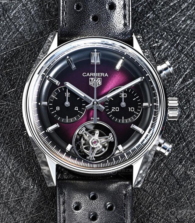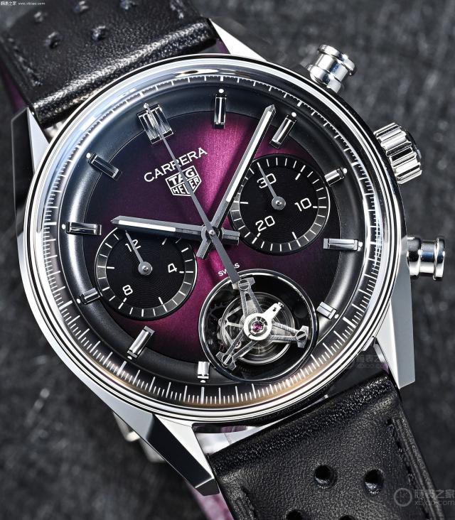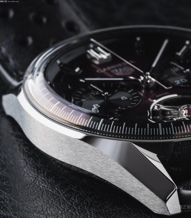 我们可以看到,在使用泰格豪雅近两年主打的“玻璃盒”外观的新卡莱拉陀飞轮记时,(glassbox)。这类镜面向上“隆起”、表盘向下“凹陷”的碗形最早出现在上个世纪。 60 时过境迁的古董卡莱拉,旨在使人们能从不同的角度看到测速圈。现在,泰格豪雅再一次复活了“玻璃盒”,显然是对当前名表复古潮流的回应。