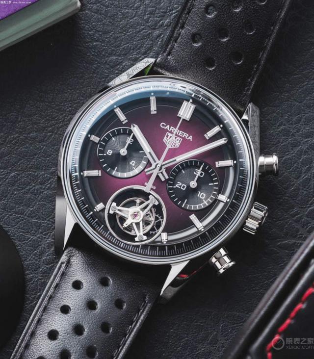 当然,陀飞轮很贵。我们不谈江诗丹顿、爱彼、朗格的陀飞轮(百达翡丽很少制造陀飞轮)。即使是来自世界各地的葡萄牙陀飞轮,公开价格也在。 57 一万多;真力时的 DEFY 长空陀飞轮钢表,公价也在。 45 万多。那在瑞士主流名表中,有没有更容易启动的陀飞轮呢?是的,泰格豪雅的卡莱拉陀飞轮。举例来说,这个新模型: