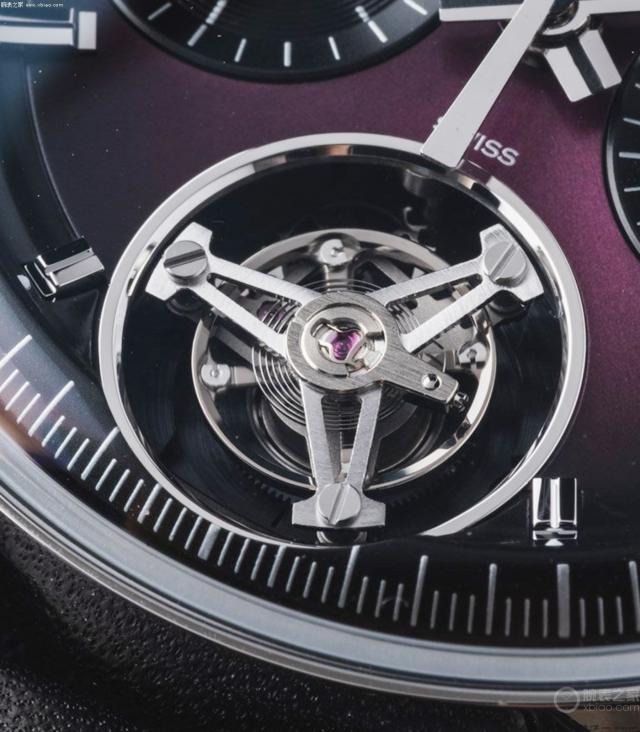泰格豪雅卡莱拉陀飞轮记时“玻璃盒”,盘面细节。