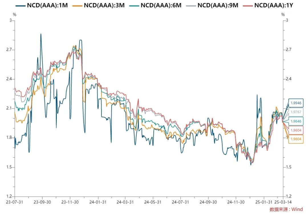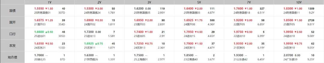 在一年期同业存单二级市场上,全国及主要股份制银行最新成交量在1.96%左右,较上日变化不大。