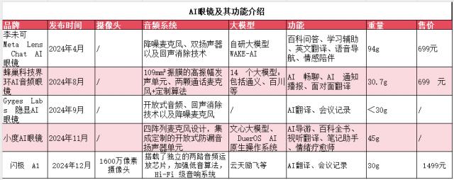 就目前的商品而言,大多数新推出的商品 AI 基本上配备了智能眼镜 AI Cpu、包括李未可可在内的语音交互功能 Meta Lens Chat AI 眼镜,蜂窝技术界环 AI 音频眼镜等。2024年摄像头配备 从2008年下半年开始,许多国产品牌纷纷推出具有这一功能的新产品,如闪极 A1。
