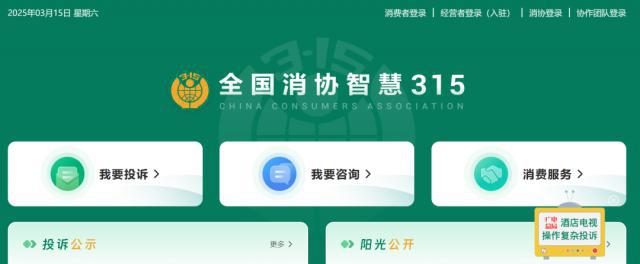 2025 年 3 月 15 日,中国消费者协会联合人民日报在人民日报新媒体大厦举行。 " 全国消协智慧 315 平台 "(以下简称消协智慧 315 平台)正式上线启动。