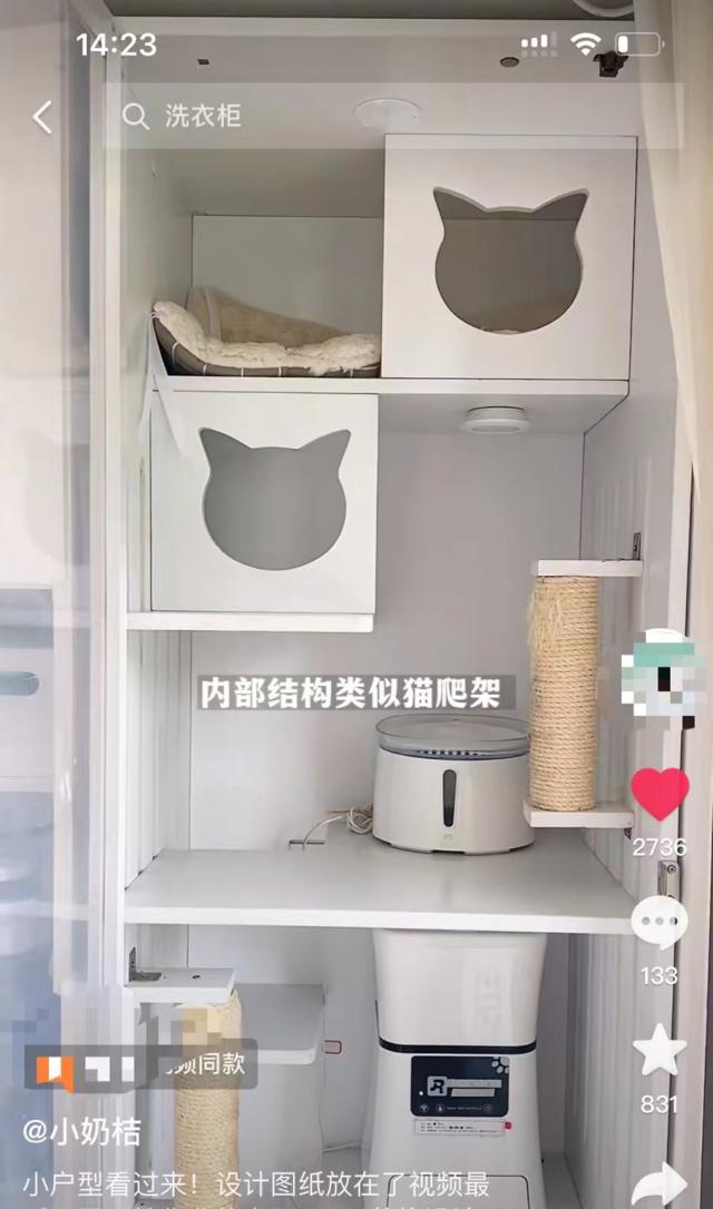 所以,女孩家里做了一个专门为宠物定制的。猫屋