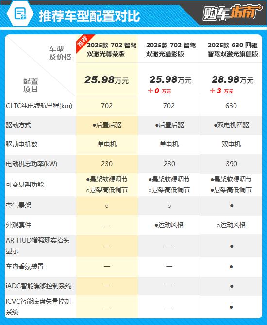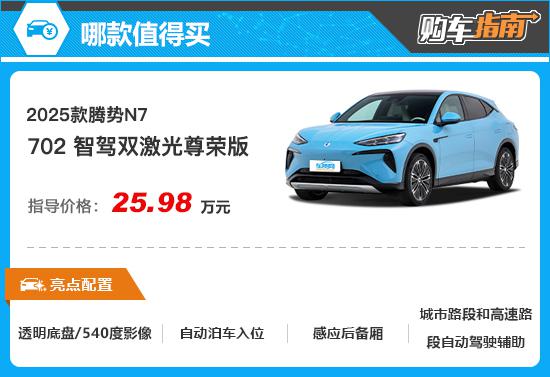 总的来说,如果你关注的话 2025 款腾势 N7,那么 702 智驾双激光高贵版值得您优先选择。