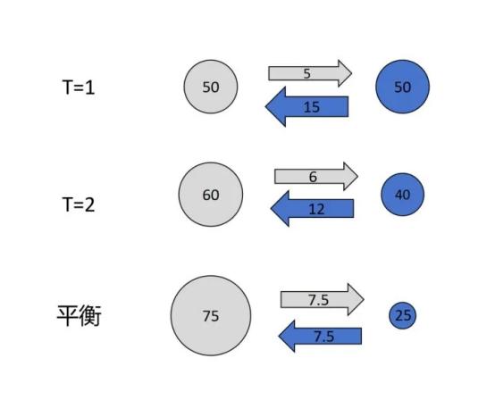 答案是一样的,每个人都可以下笔算,不管你如何设定初始值,只要转换概率不变,这组“生活卷躺概率”的最终结果只能是“75卷,25躺”。