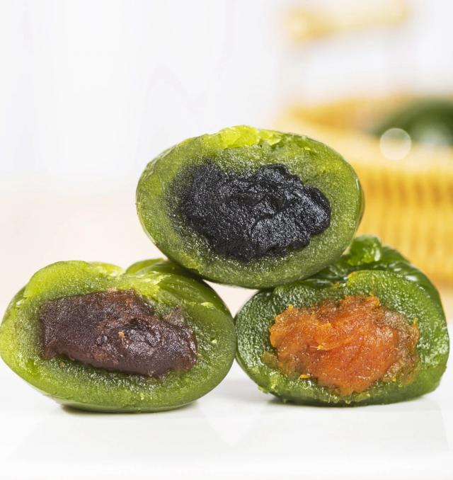 肥上艾草青团选用上好的糯米粉,麦芽糖浆代替糖精,除口感好外,甜度适中,保证健康。