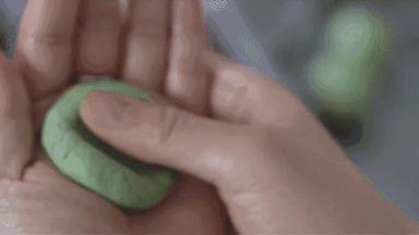 把馅料包起来,揉成球。将湿布铺在笼子里,放入青团生坯,上锅蒸约。 15 每分钟到熟再刷一层薄薄的油,青团的颜色呈现出清新的绿色。
