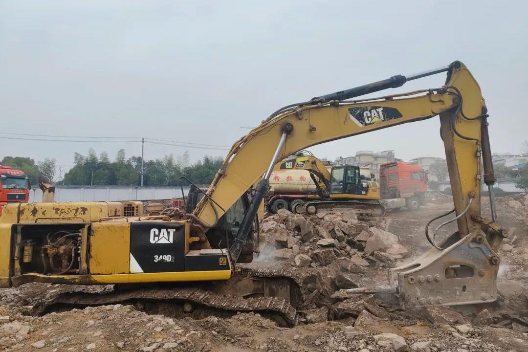 伴随着工程挖掘机、运土车的轰隆声