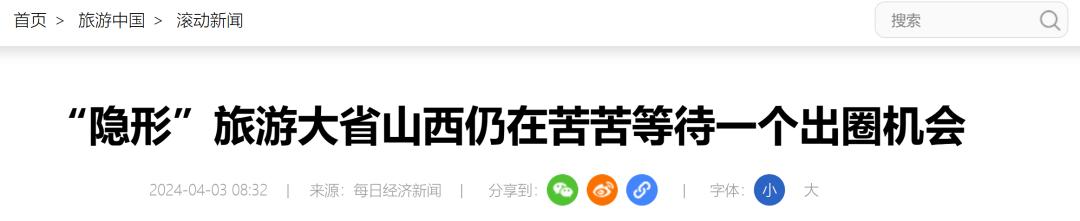 就在2024年4月,文旅中国还发文章说,旅游大省山西还在苦等一个出圈机会。