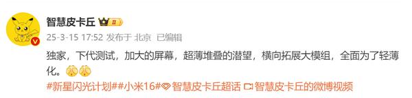 【CNMO 近日,关于小米的科技新闻 16 这一系列的爆料不断涌现,尤其是屏幕和外观设计的变化备受关注。而且根据最新动态,小米 16 Pro 更多的屏幕尺寸、超薄堆叠的潜望镜头正在检测中,外观采用横向扩展的大模块设计,全面轻薄。小米曾经在小米 11 Ultra 横向大矩阵型号采用横向大矩阵 DECO 设计,但是后来这个设计被旗舰系列抛弃了。如今,小米 16 这个系列重启了这个设计,意味着它的外观会有明显的变化。