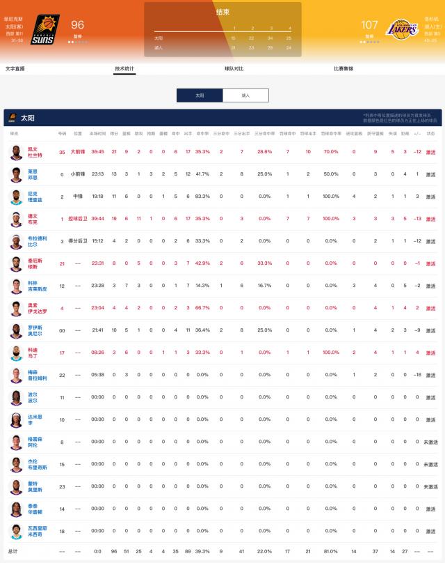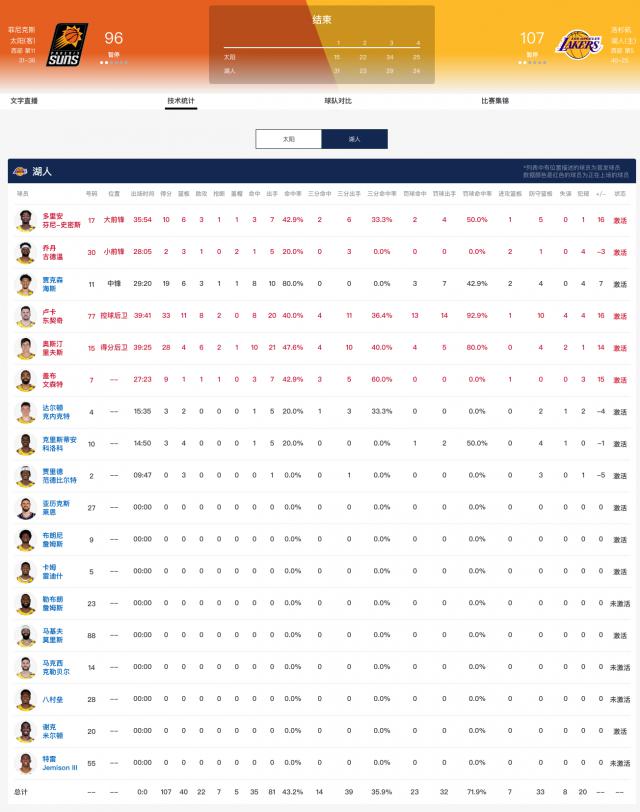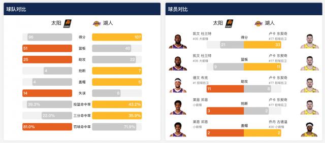 双核连败,人回归正轨,湖人队主场击败太阳。