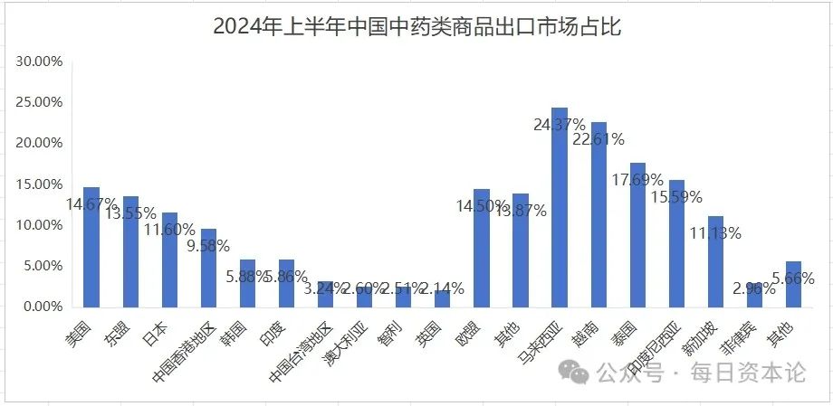 以中药出口为例,据中国海关统计,2024年上半年,中药外贸总额为41.7亿美元,同比下降4%。其中,出口价值26.57亿美元,同比下降7%。部分原因是产品一致性和标准化问题没有得到解决。显然,实现中药优质系统工程,迫切需要“政治、生产、学习、研究、使用”各界的共同努力,推动中药标准化建设。