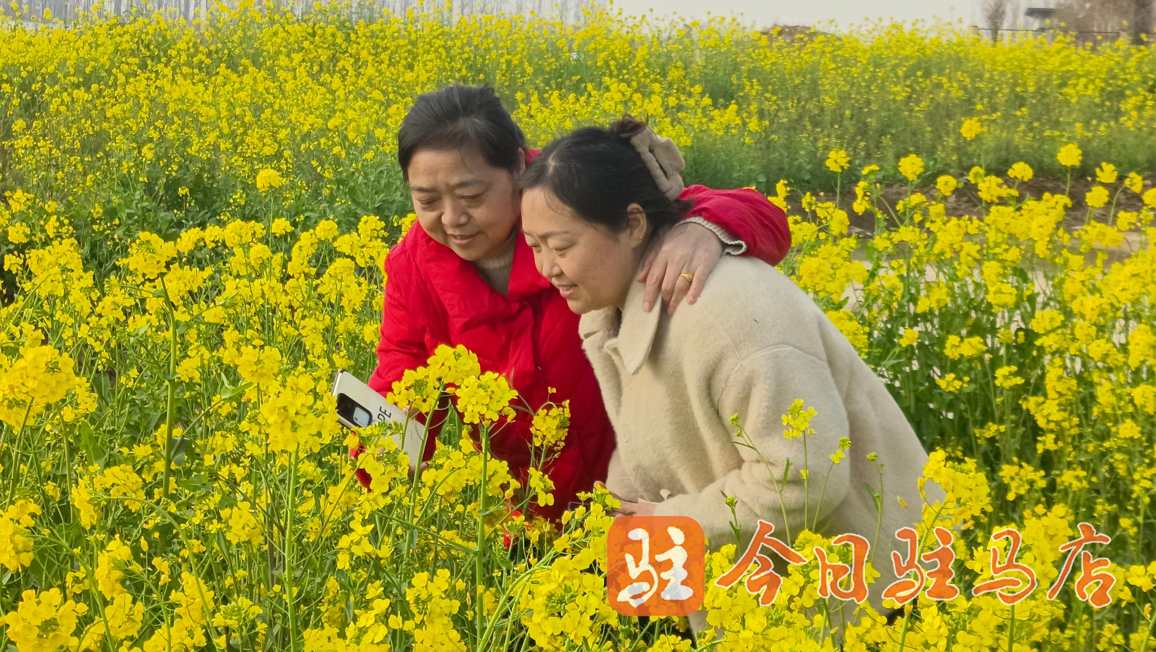 沿着岸边走,一阵阵油菜花香扑面而来。田野里的金色画轴映入眼帘,蜜蜂迎花飞舞,吸引人们踏青游玩,品味春意。