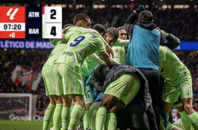 3 月 17 日本,西甲焦点对决,巴萨客场挑战马竞。第一 70 巴萨还有几分钟 0-2 落后。巴萨在最后半小时狂轰滥炸 4 球,强逆转。2025 年初以来,巴萨一场没有输球,被称为足球最强球队。