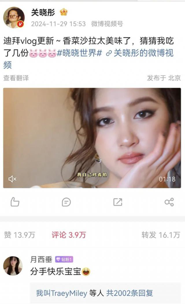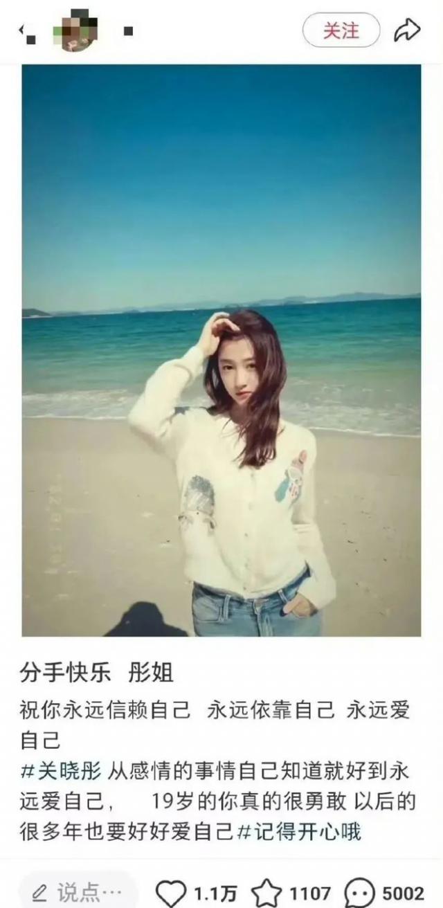 这个问题传开后,很多网友也扒出了蛛丝马迹。举例来说,在关晓彤的微博下,粉丝们在下面评论“分手快乐”。