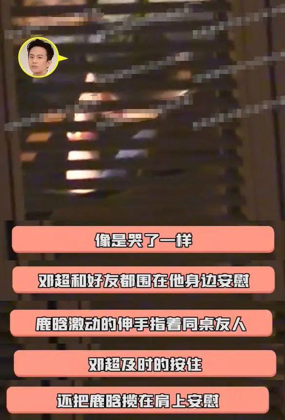 聚会中途鹿晗突然兴奋地指着对面的朋友,最后像哭了一样,在朋友的安慰下才平静下来。