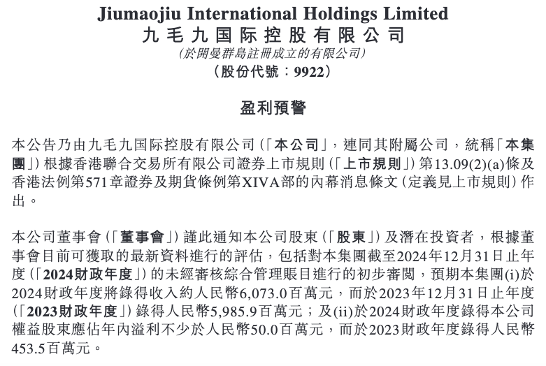 iBrandi品创获悉,3月10日,餐饮巨头九毛九(099222).HK)发布盈利预警公告。