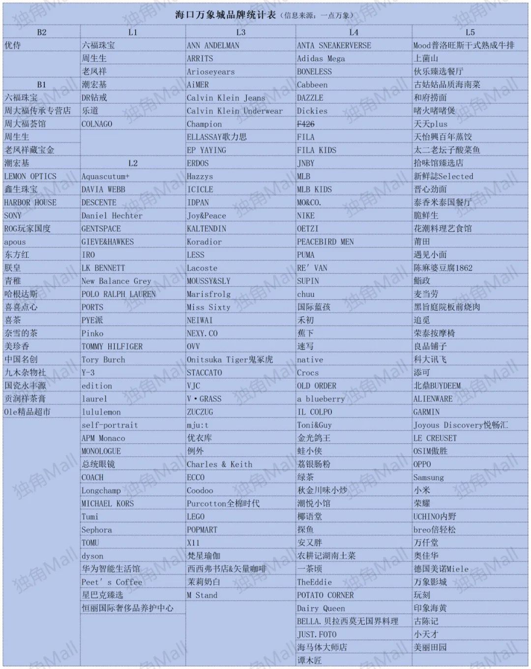 另外,根据海口万象城小红书,对去年推出的品牌进行了统计,大部分都是体育零售品牌和设计师品牌。