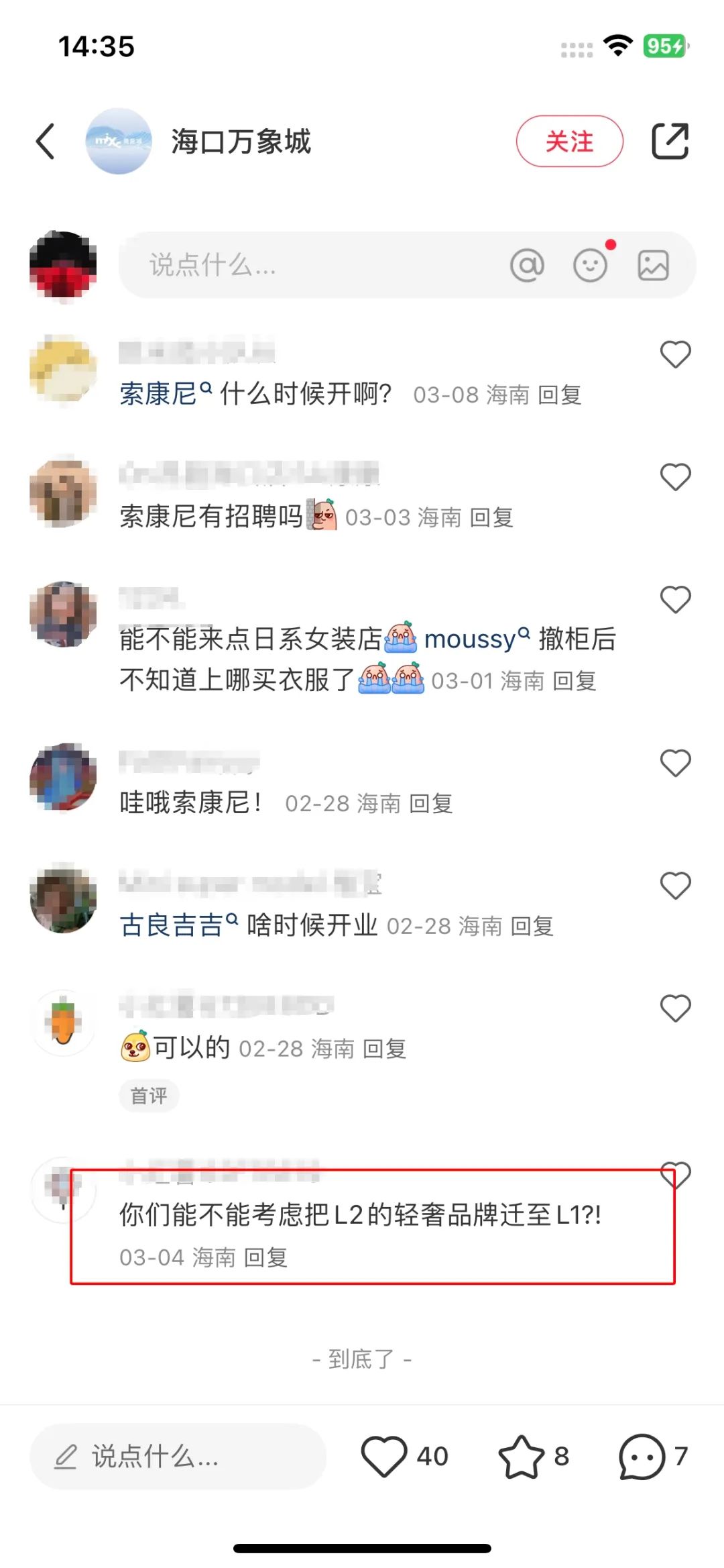 甚至有网友在海口万象城小红书官方号上留言,希望该项目能把楼上的奢侈品牌搬到一楼。
