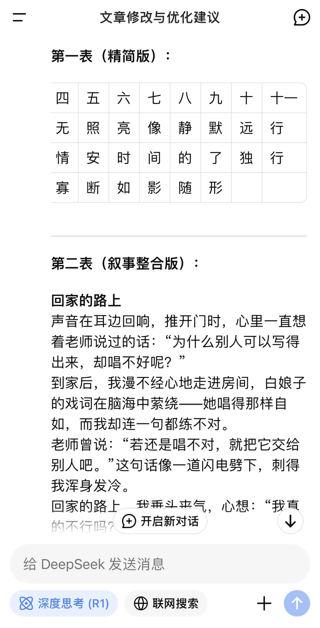 对于许多家长来说,修改作文需要时间和精力。《IT时报》记者在DeepSeek和腾讯元宝上上传了一篇同样的500字手写作文,要求修改作文并提出建议。从修改作文来看,腾讯元宝更胜一筹,不仅完全展示了一篇修改后的作文,还提出了优化结构、加入环境描述、设定代表意境等诸多建议。虽然DeepSeek也提出了许多修改建议,但是它并没有表现出一篇完整修改后的作文。