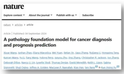 病理学诊断领域, AI病理诊断系统可以帮助病理学家快速准确地识别癌细胞,显著提高诊断效率,减少人为偏差,提高诊断质量。哈佛大学余坤兴团队的研究结果显示,在19种癌症诊断中,AI病理诊断模型的检验准确率接近94%,显示出与资深病理学家相当的诊断水平。