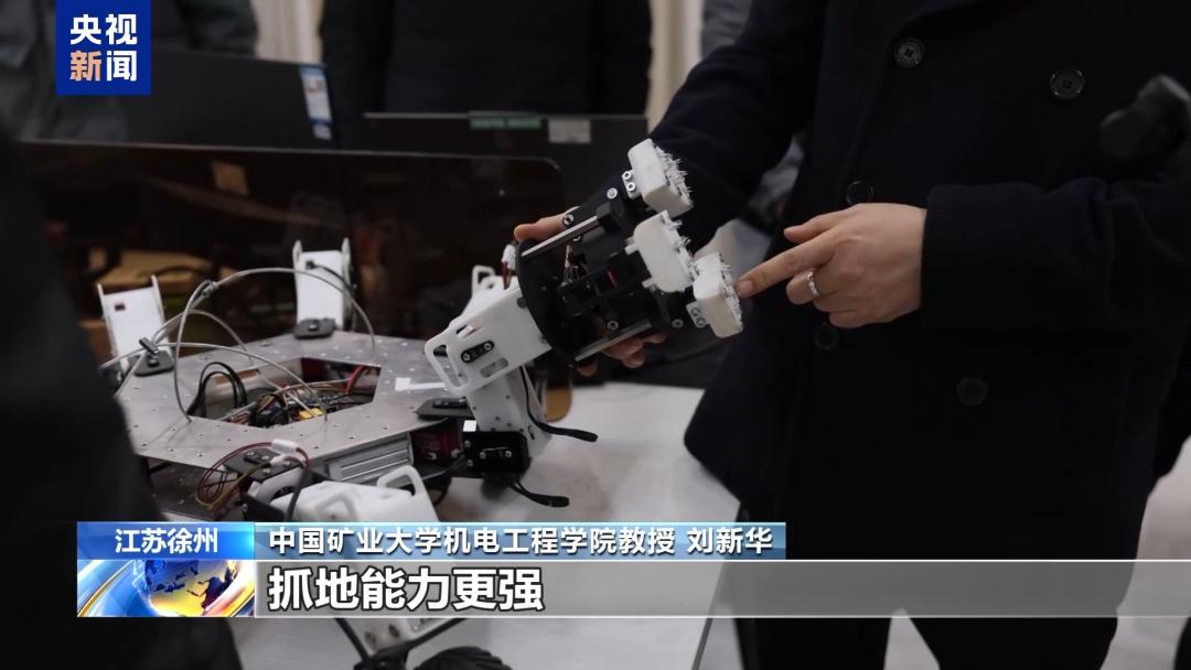 中国矿业大学教授刘新华团队开发的多功能太空采矿机器人不同于流行的人形机器人和机器狗。太空采矿机器人的基本形式是六条腿,包括三个轮子和三只爪子。刘新华教授告诉记者,这种设计的主要目的是适应太空中的微重力环境。