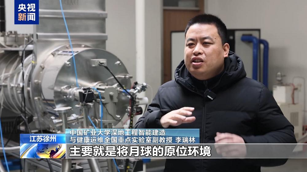 全国重点实验室副教授中国矿业大学深地工程智能建设与健康运维 李瑞林:该设备主要模拟月球的原始环境。六分之一G重力场,超高真空环境。白天月球高温可达130℃,晚上可达-180℃,甚至极区低温可达-250℃。