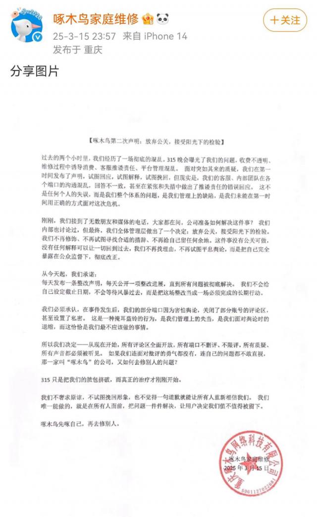 啄木鸟继续发表声明,在第二份声明中,啄木鸟表示“放弃公关”。