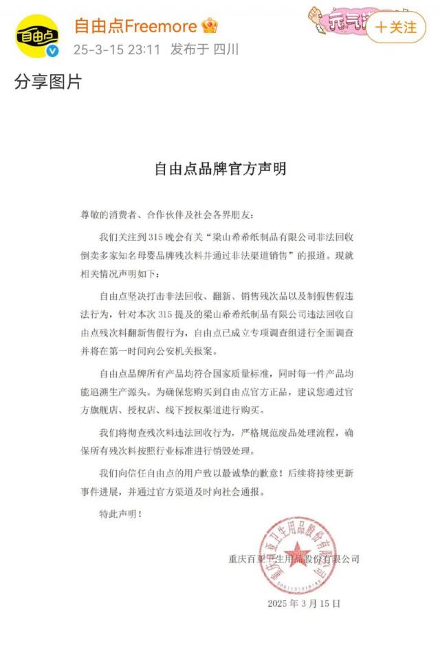 自由点:自由点已成立专项调查组进行全面调查,并将尽快向公安机关报案。我们将彻底调查残次料的非法回收行为,严格规范废品处理流程,确保所有残次料按行业标准销毁。我们向信任自由点的用户致以最诚挚的歉意!