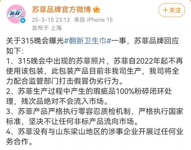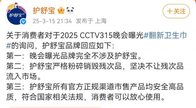 3月15日晚会后,多家卫生巾品牌紧急响应!一家公司“放弃公关”