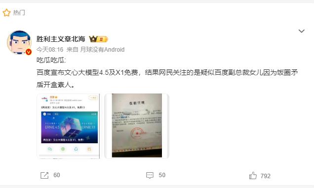 文 / 三言科技 最近有传言说,百度副总裁谢广军闺女因为偶像化的争吵“打开盒子”了别人,晒出了爸爸月薪。 22 万的在职证明。