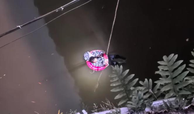 路人发现有人影在水中扑腾挣扎。