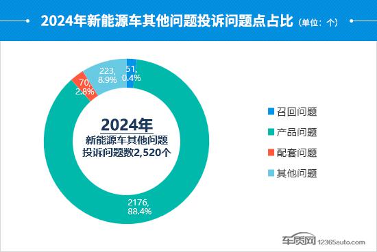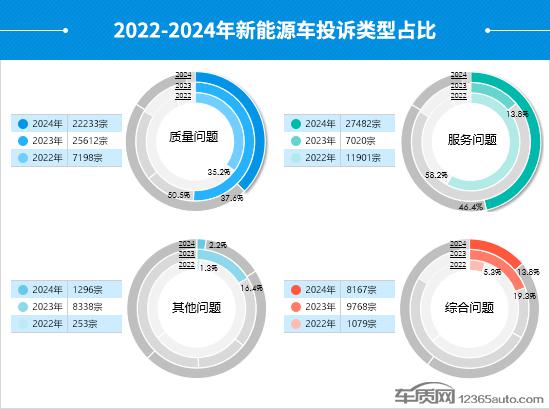 2024 2008年,服务问题成为新能源汽车投诉的“高发区”,投诉数量同比增长。 2.9 倍,创历史新高,投诉比例增加。 32.6 %。另一方面,其他投诉类型、质量问题、其他问题和综合问题的投诉数量和比例 2023 每年都有下降,其它问题减幅最大,投诉占比再次回归个位。