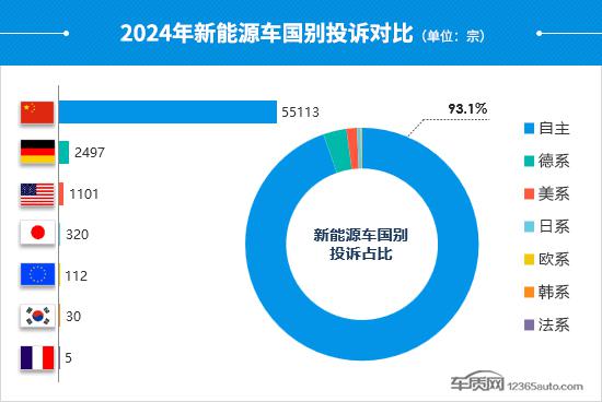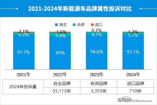 车质网作为国内领先的缺陷汽车产品信息收集平台, 2024 年度受理客户对汽车产品的有效投诉 173,168 宗(包括第三方平台和后装轮胎投诉) 199 宗)。其中,新能源汽车累计投诉数量为 59,178 宗,同比增长 16.6%。根据投诉比例,占年度投诉总数的比例 34.2%,与 2023 年相比提高 4.1 %。2024 年度新能源汽车车型投诉中,共涉及 172 一个汽车品牌旗下的 600 一款车型,同比增长 19 个品牌和 142 一款车型,整体投诉回复率为 96.2%,相比 2023 年提升了 1 %。其中,有 78 一个品牌的投诉回复率已经达到 百分之百,同比增长 5 个品牌。