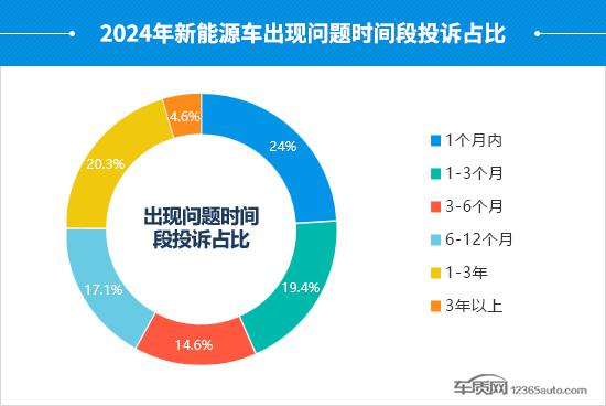 2024年,根据新能源汽车问题时间段和车辆行驶里程投诉比例的变化, 2008年新能源汽车投诉增长集中在买车上 3 行驶里程和几个月 10000 在公里以内的车型中,车主在新车阶段抱怨的可能性增加。