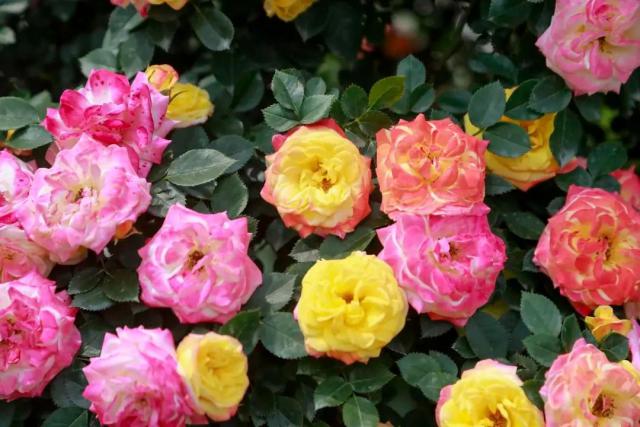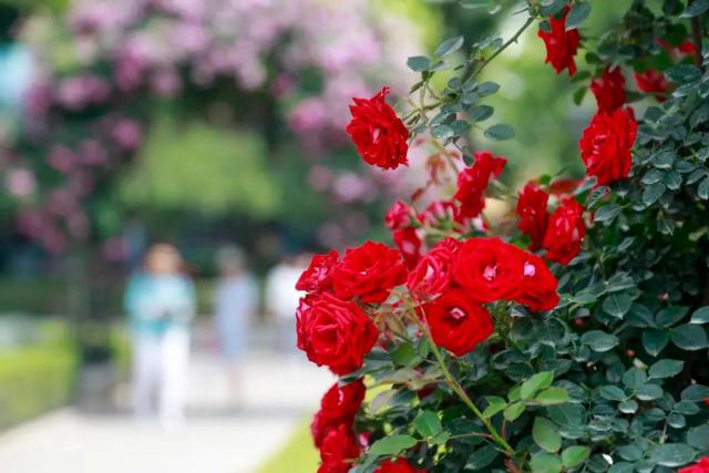 “月季园”复兴公园种植面积 1500 平方米有很多品种,比如“绯扇、梅朗口红、节日花、戴安娜”。花形饱满,色彩斑斓,美不胜收。结合常绿整形树篱所呈现的螺纹图案,将法国规则的园林风格展现到极致。