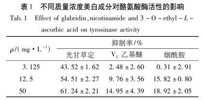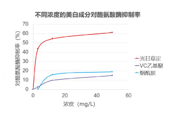表明光甘草定的有效浓度远低于烟酰胺和烟酰胺。 VC 乙基醚
