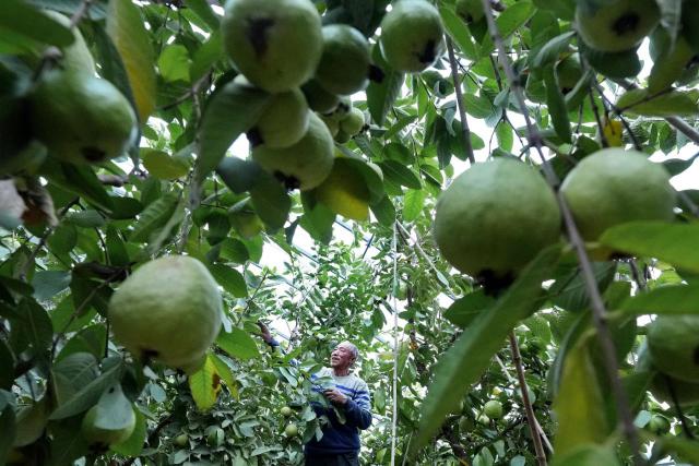 河北省秦皇岛市海港区北港镇一个家庭农场的工人正在管护芭乐。新华社记者 杨世尧 摄