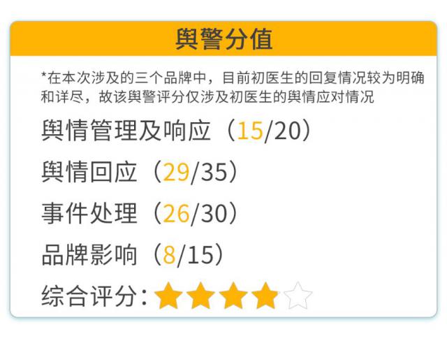 企业回应简述:3 月 16 日本,初医品牌发布官方声明,注意到 3 · 15 与“健芝初的一次性内衣有非杀菌问题”有关的晚会感到震惊和内疚。公司高度重视。首先,他们郑重向所有客户道歉,并立即进行全面调查,决定先向相关客户支付费用。