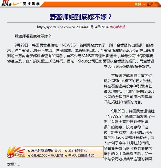 2004 2008年,全智贤突然被媒体报道要结婚,震惊了大众,但据这家媒体报道,结婚的对象是她的老板郑勋拓。