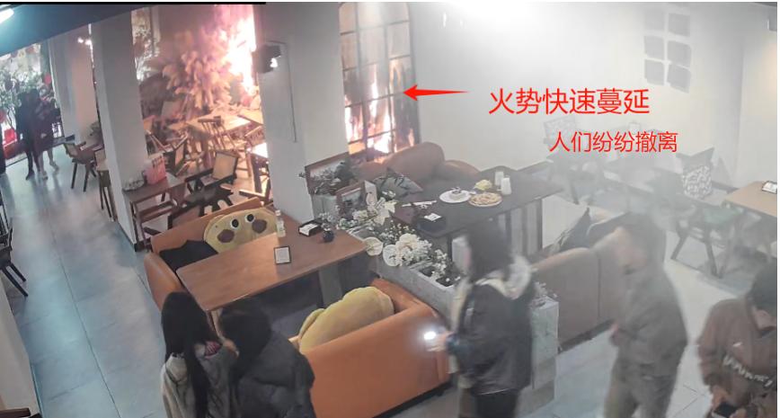 火势在他们离开后愈演愈烈,引起现场烟感报警,幸好周边商铺人员反应迅速,有效地控制了火势。