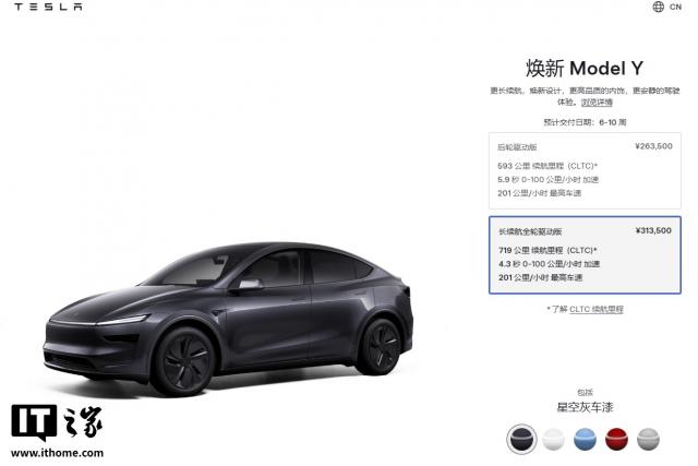 IT 世家 3 月 18 每日消息,特斯拉官网显示,特斯拉焕新 Model Y 长续航全轮驱动版价格上涨 1 最新报价万元 31.35 一万元;后驱版价格不变,仍然是 26.35 万元。