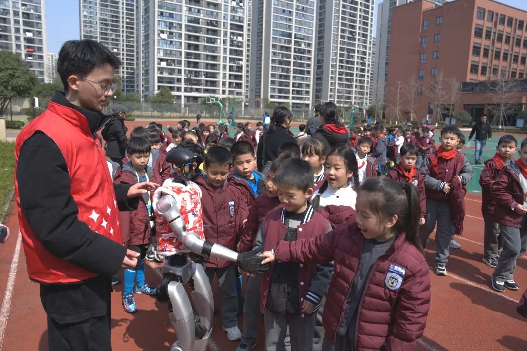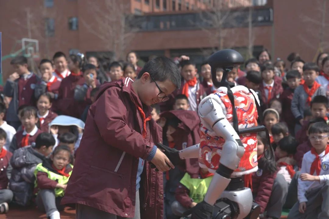借助有趣的小实验,我校志愿者和科技馆讲师向孩子们展示了科学的奇妙之处。当服务机器人随着音乐跳出灵动的舞步时,现场传来“哇哇”的惊叹声,充分展现了孩子们对智能机器人的好奇心和惊喜。他们似乎在惊喜中触摸到了未来人工智能的蓝图。沉浸式的科普课让现场掌声不断。五年级的王同学兴奋地说:“原来AI离我们这么近!真想成为一名改变未来的工程师!”