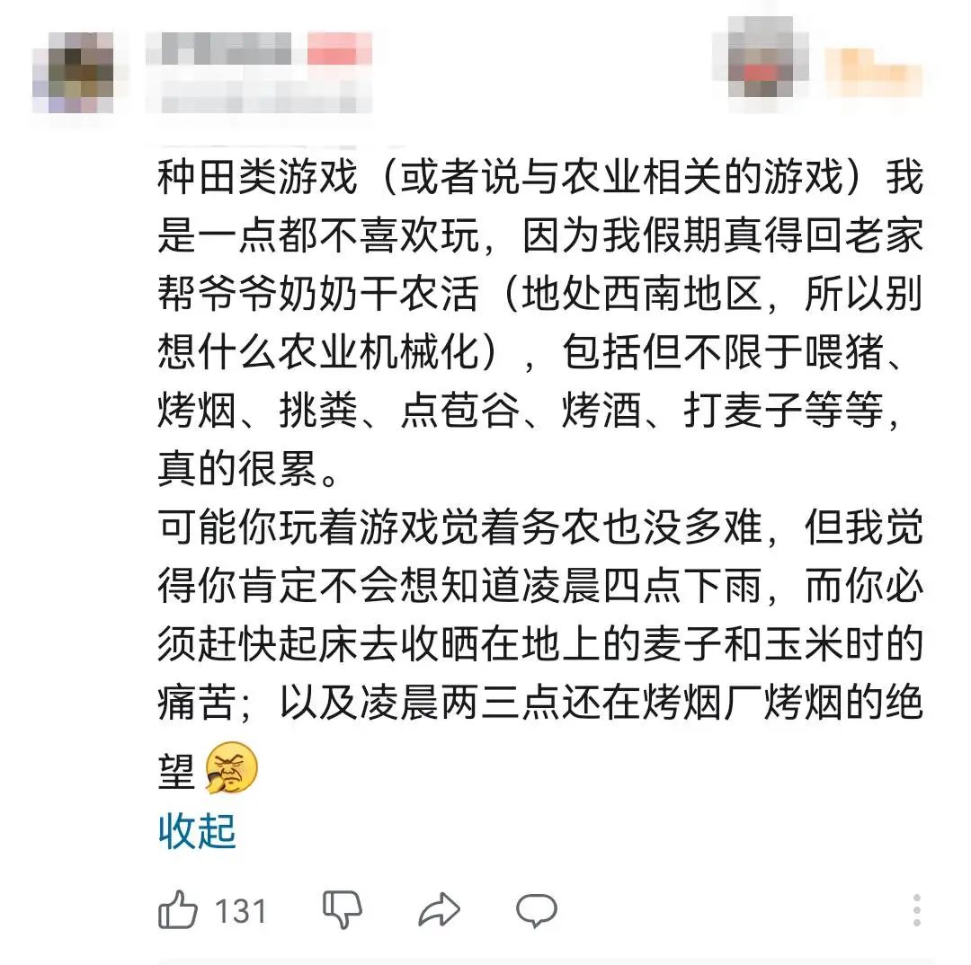 事实上,除游戏外,其它娱乐作品也为人们提供了“感觉”种地的机会。
